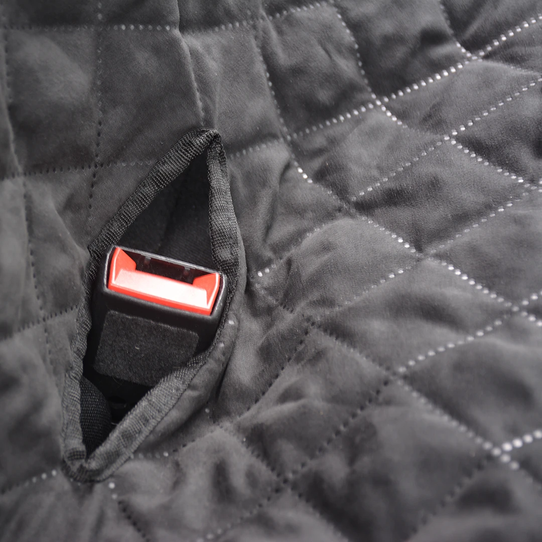 Geniet samen met jouw hond van een aangename uitstap dankzij de duvoplus backseat cover. Deze comfortabele en scheurvaste beschermhoes beschermt jouw autostoel tegen haren, krassen en vlekken. Dankzij de comfortabele brede randen en micro-suede stof kan je hond in alle comfort autodutjes maken. Bevestig het deken eenvoudig met behulp van de lussen rond de hoofdsteunen en onderaan aan de zetel. Met de uitsparingen in de hoes kan je gemakkelijk de veiligheidsgordel gebruiken. Voor maximale veiligheid, is het belangrijk om je hond altijd met een hondenveiligheidsgordel vast te klikken. Zonder zorgen, veilig en comfortabel onderweg met duvoplus!