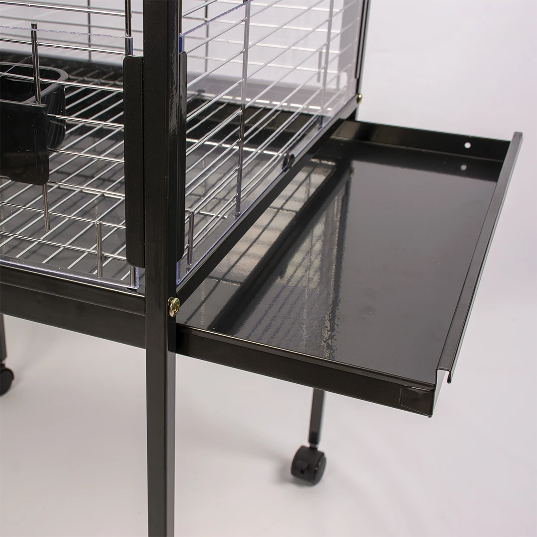 De papegaaikooi Junior Xxlight is een papegaaikooi voor maximum 1 kleinere papegaai. De kooi heeft een deurtje aan de voorzijde en een grote opening, met zitstok, bovenaan. In totaal zijn er 2 zitstokken. De metalen schuif kan je eenvoudig uit de kooi schuiven om schoon te maken. De plexi onderzijde en boord beschermd de ondergrond en omgeving verder tegen vuiligheid.