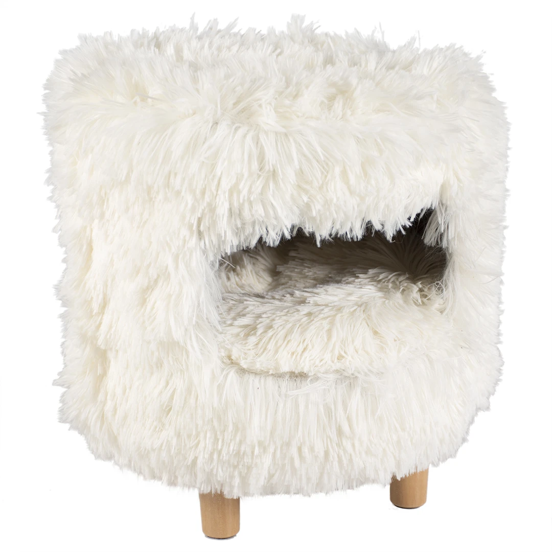 KATTENHUIS MET LANGE PLUSH 31x31x34cm Wit