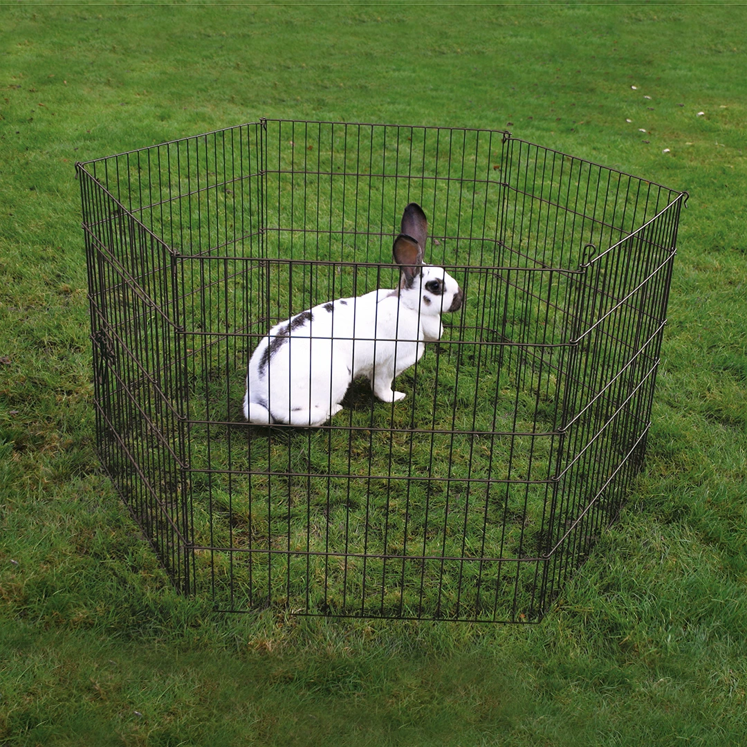Het knaagdierenpark van duvoplus geeft je konijnen of cavia`s extra ruimte om te spelen en rond te huppelen. Het park bestaat uit 6 panelen, gemaakt van duurzaam metaal met zwarte coating. Eenvoudig te monteren met 6 montage pins. De praktische ren is 60cm hoog en kan zowel binnen als buiten gebruikt worden en heeft een handig deurtje. Zet de ren in de schaduw en zorg ervoor dat je konijn altijd beschikt over voldoende vers drinkwater en hooi. Wil je de ren nog groter maken dan kun je meerdere rennen combineren.