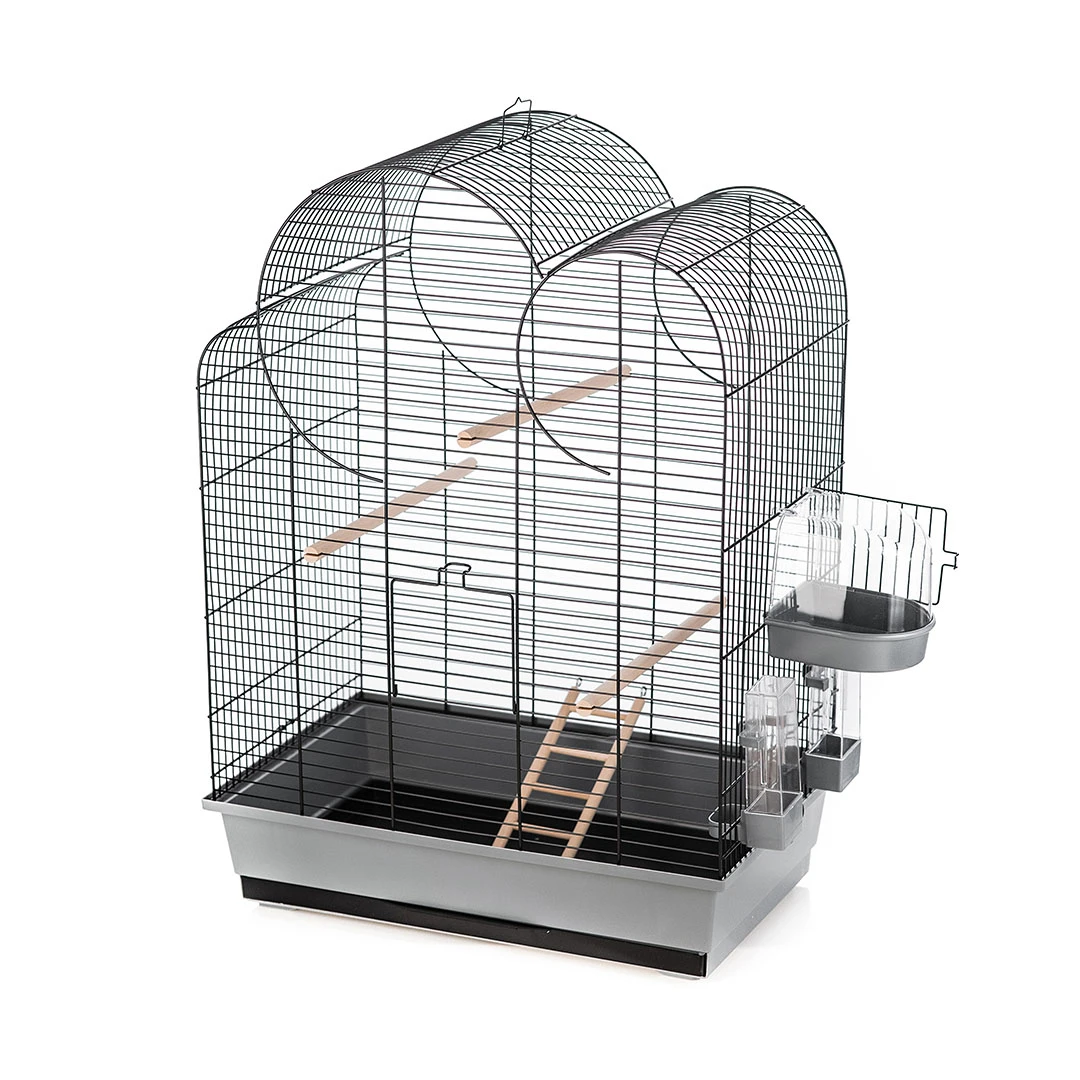 De vogelkooi Eliza van duvoplus is een kwalitatieve kooi inclusief badhuis en 2 eetbakjes. Er zijn ook 3 zitstokken inbegrepen en is dus geschikt voor 3 vogels. Ze heeft een uitschuifbare lade om eenvoudig het bodemzand te verversen. Bovendien is er ook een laddertje veel extra klimplezier.