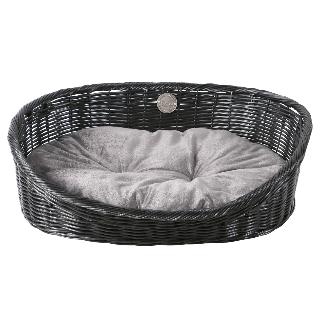 Deze rustieke mand in polyrotan, een kunstmatig product dat lijkt op rotan, past perfect op terras of in de woonkamer. Poly rotan is duurzaam en bestand tegen hitte, kou en regen. Je laat ze dus gewoon buiten staan, net als de terrasmeubelen. Je hebt nauwelijks onderhoud aan deze mand. Ze komt inclusief een extra zacht kussen voor extra slaapcomfort. Ze is beschikbaar in verschillende maten (maar is eerder geschikt voor kleine honden en katten) en verschillende kleuren.
