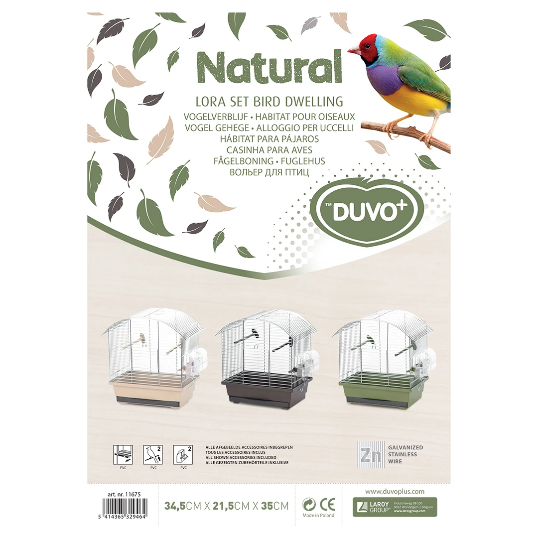 De Natural vogelkooi Lora van duvoplus is een kwalitatief verblijf met een leuk design in natuurlijke kleuren, inclusief eetbak, drinkbak, 2 zitstokken en een uitschuifbare lade. Beschikbaar in 3 natuurlijke kleuren: beige, bruin en olijfgroen. Deze kooi is gemaakt uit gegalvaniseerde roestvrije draad, 100% veilig voor jouw vogels. Uiterst geschikt voor kleine vogels zoals kanaries, grasparkieten en tropische vogels.