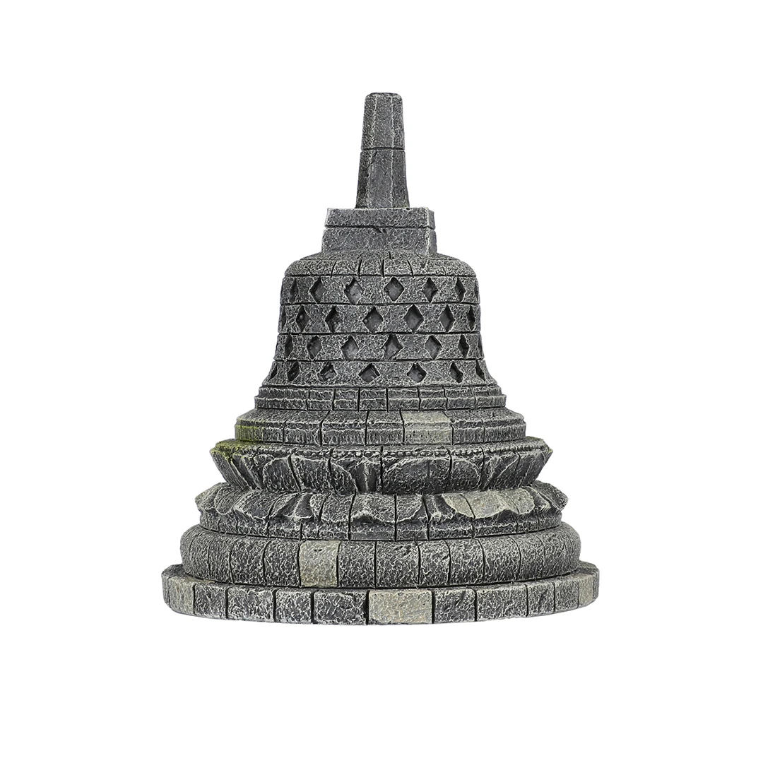 Te midden van Java staat een prachtige Boedistische tempel genaamd Borobudur. Deze tempels staan vol met stoepas waarin Boedha`s verscholen zitten. Met dit ornament wordt een aquarium een tempel voor de vis. Dit ornament is gemaakt van Polyresin, 100% gifvrij en uiterst geschikt voor zoet- en zeewateraquaria. Het biologisch evenwicht van de vis zal niet beinvloed worden. Kleurveranderingen zijn na enige tijd niet uit te sluiten.